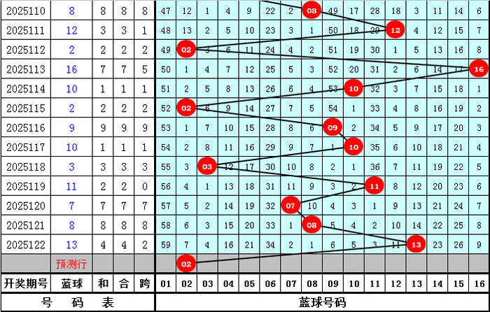 蓝球分析:第2025122期开出蓝球13,最近10期蓝球号码遗漏期数分别为:8期、20期、2期、54期、2期、8期、36期、11期、10期、14期,第2025123期蓝球提防02-16段出号,重心矜恤2路蓝球。第2025113期参考蓝球:02。