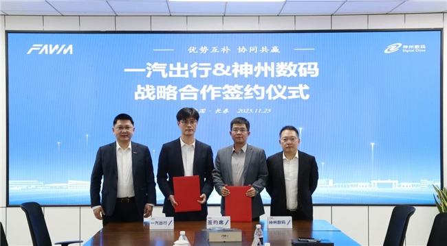 11月25日,北京神州数码云诡计有限公司与一汽出行科技有限公司负责签署策略合作框架条约,符号着两边在机灵出行与数字化时刻鸿沟迈入深度协同的新阶段。一汽出行副总司理刘天水,神州数码副总裁、企业云业务集团总裁吴昊出席并见证签约典礼。